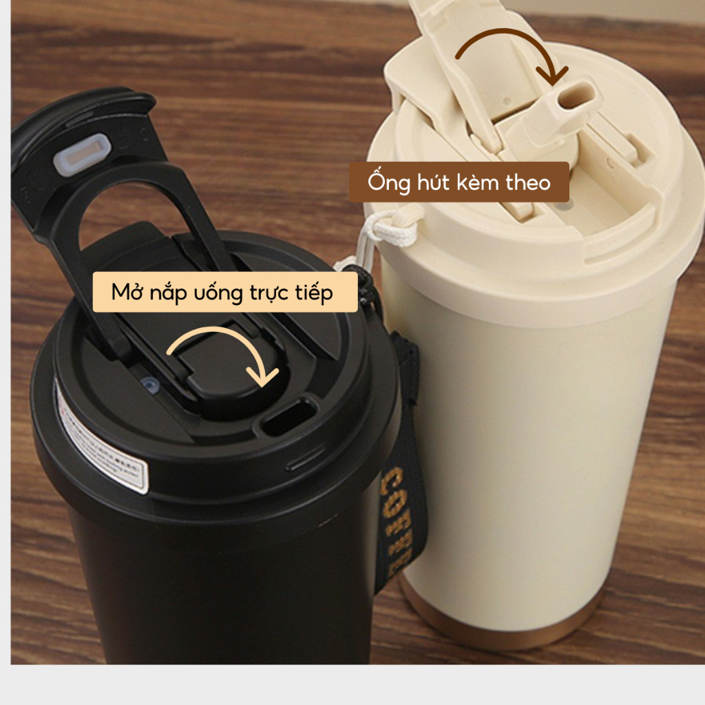 - Nắp kín chống tràn, có quai xách và ống hút silicone: Tiện lợi mang theo mọi nơi.