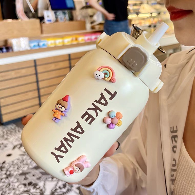 TAKE AWAY khắc phục tất cả: vỏ inox chống va đập, dung tích lớn, giữ nhiệt tốt, nắp kín + ống hút tiện lợi – uống nhanh, gọn, không sợ tràn.