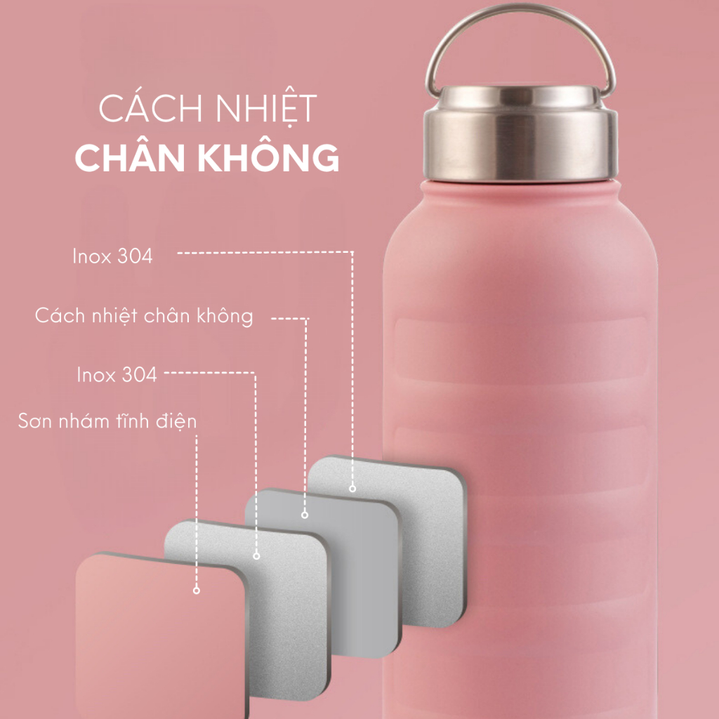 - Chất liệu Inox 304 toàn diện – Bền bỉ vượt thời gian: Toàn bộ bình được làm từ inox 304 cao cấp, đảm bảo không gỉ sét, không ám mùi khó chịu, cực kỳ dễ vệ sinh và có độ bền vượt trội theo năm tháng.