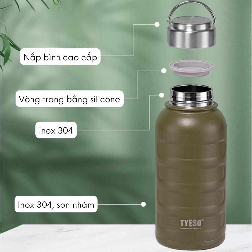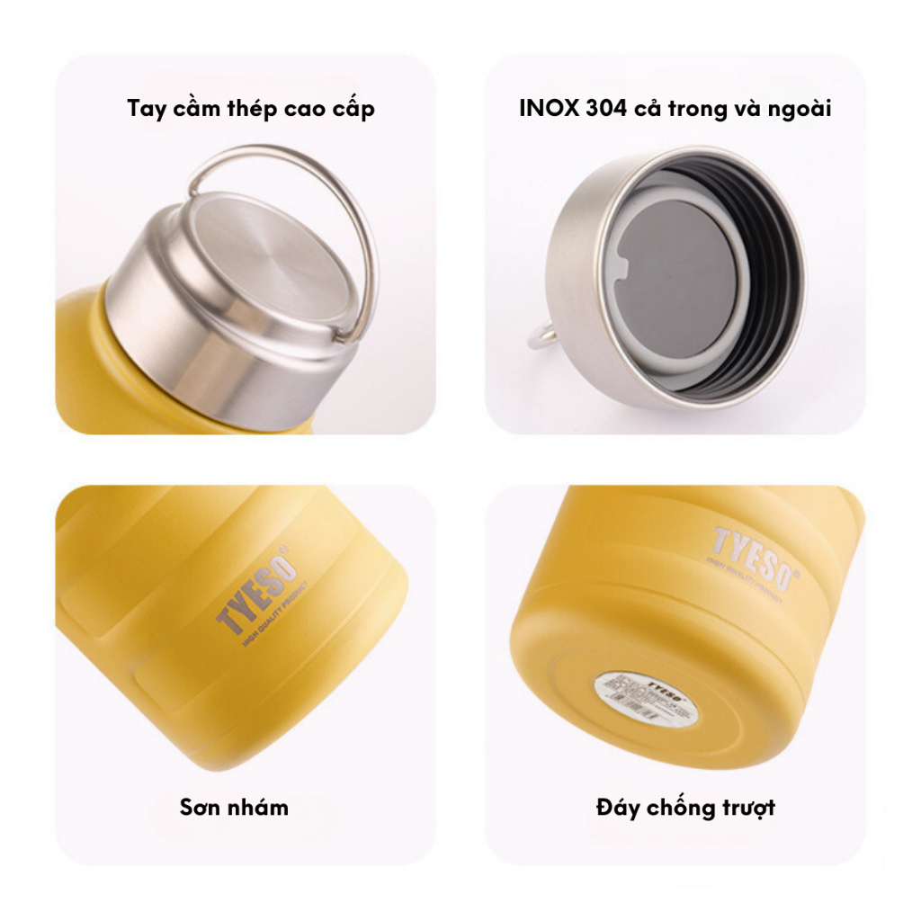 TYESO Larva khắc phục triệt để: Toàn bộ thân, nắp và tay cầm làm từ inox 304 – chắc chắn từ trong ra ngoài, giữ nhiệt tốt, dễ rửa, sẵn sàng đi rừng, leo núi, gym, trekking mỗi ngày.