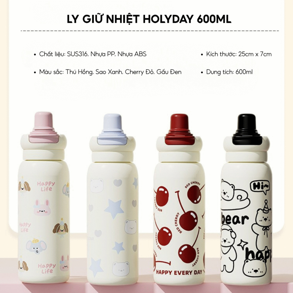 Bạn yêu thích những thiết kế đáng yêu nhưng vẫn muốn một sản phẩm chất lượng cao, giữ nhiệt tốt và tiện dụng mỗi ngày? Ly giữ nhiệt Holiday 600ml sẽ khiến bạn phải “gật gù” ngay từ lần đầu sử dụng! Sự kết hợp hoàn hảo giữa thẩm mỹ và công năng, với chất liệu inox 316 cao cấp và diện mạo ngộ nghĩnh – chính là lý do em ly này đang được săn lùng rần rần!