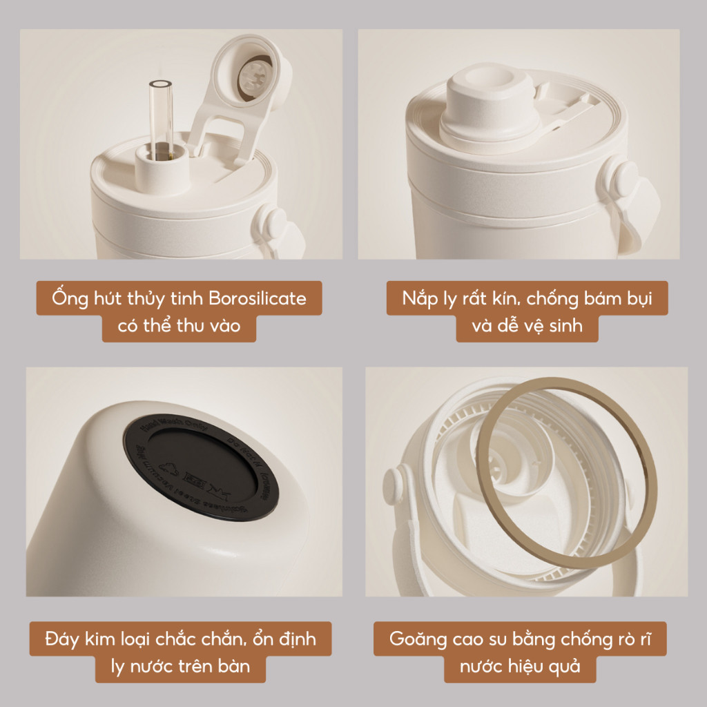 - Cách nhiệt chân không 2 lớp: Giữ nhiệt hiệu quả, giúp đồ uống của bạn giữ nóng hoặc giữ lạnh từ 8 đến 12 tiếng, lý tưởng cho cả ngày dài.