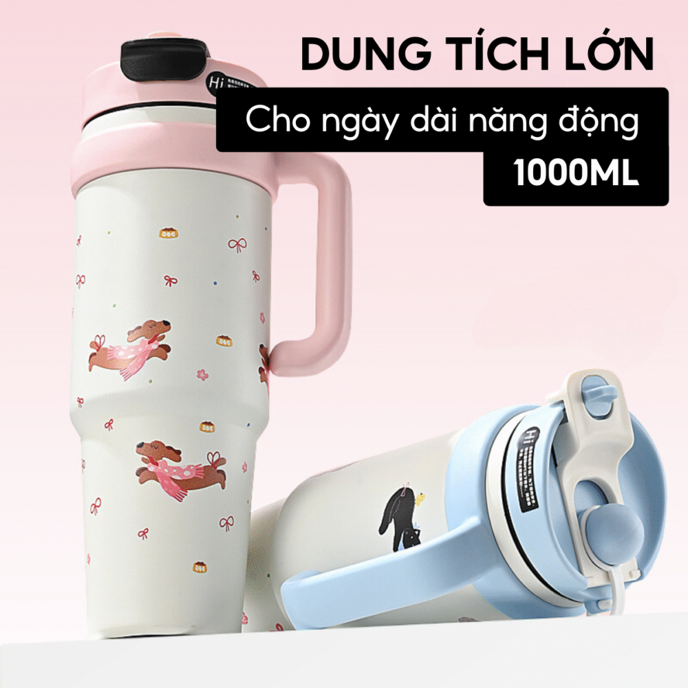- Dung tích lớn – tha hồ tận hưởng: Với 1000ml, bạn có thể mang theo sinh tố, trà lạnh, cà phê sữa hay nước lọc tùy ý – chỉ cần 1 lần rót, uống thả ga cả ngày!