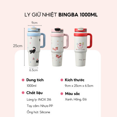 Hãy tạm biệt những ly nước nguội lạnh hay ấm lên vô vị! Ly giữ nhiệt BingBa 1000ml sẽ là người bạn đồng hành tin cậy, giúp bạn thưởng thức đồ uống trọn vẹn hương vị ở nhiệt độ lý tưởng, không lo gián đoạn.