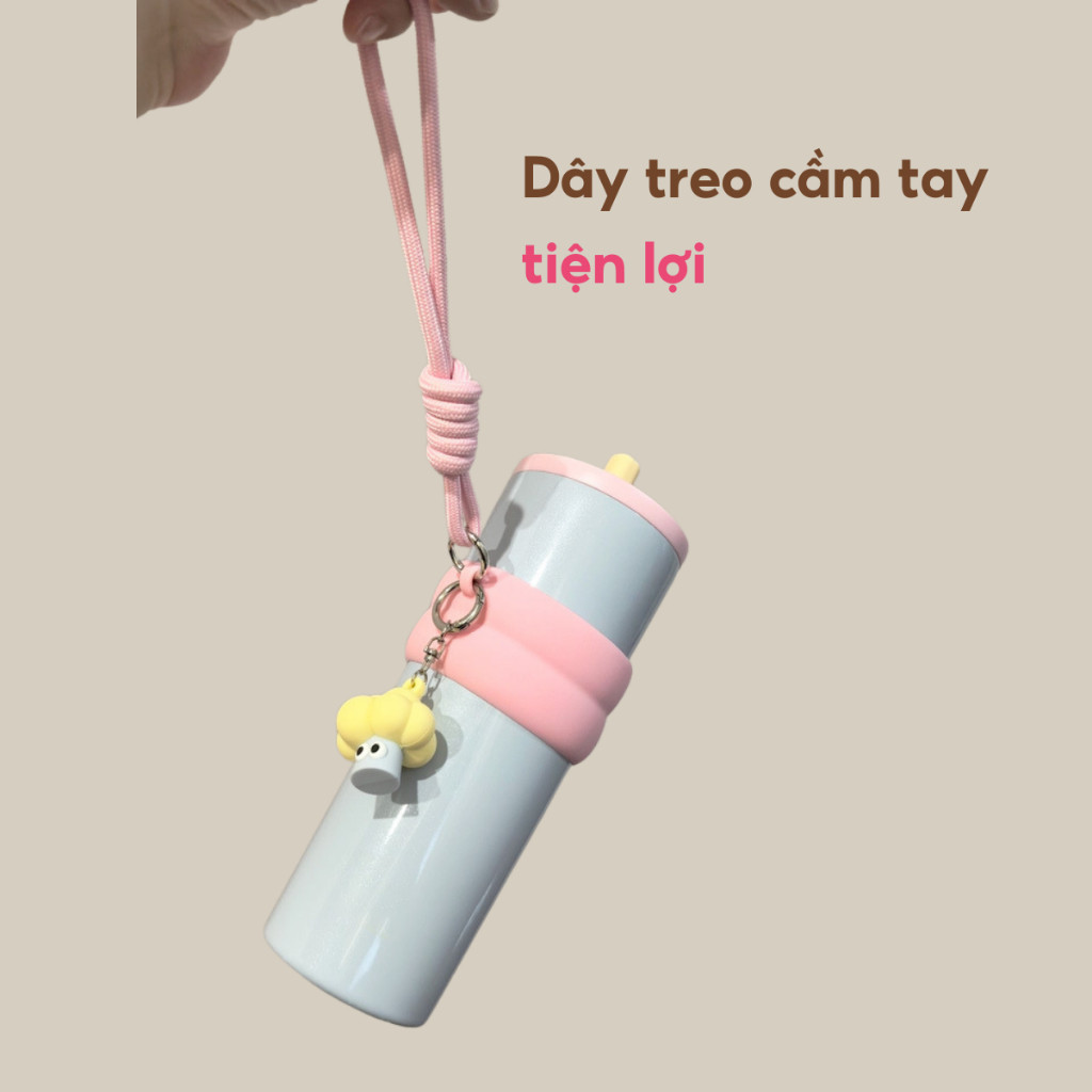 - Dây xách tiện lợi: Giúp bạn dễ dàng cầm tay hoặc móc vào ba lô, mang theo bình đi khắp mọi nơi một cách gọn gàng.