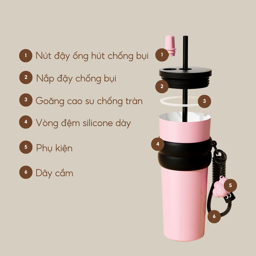 Rất phù hợp! Dung tích lớn, giữ nhiệt tốt, dễ cầm – ai cũng cần một chiếc ly như vậy. - Ống hút có tháo rời để vệ sinh không?