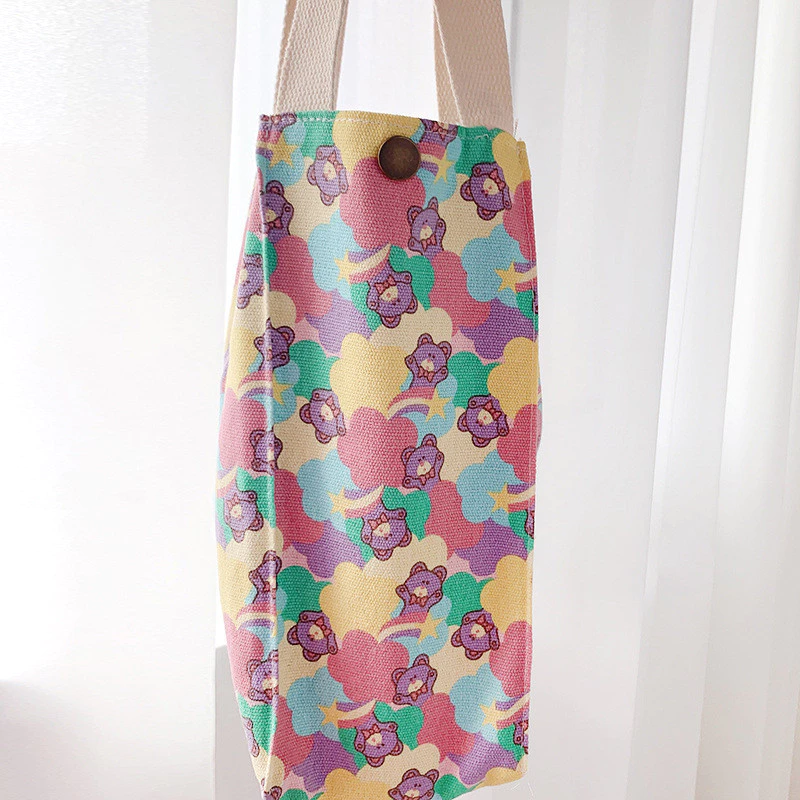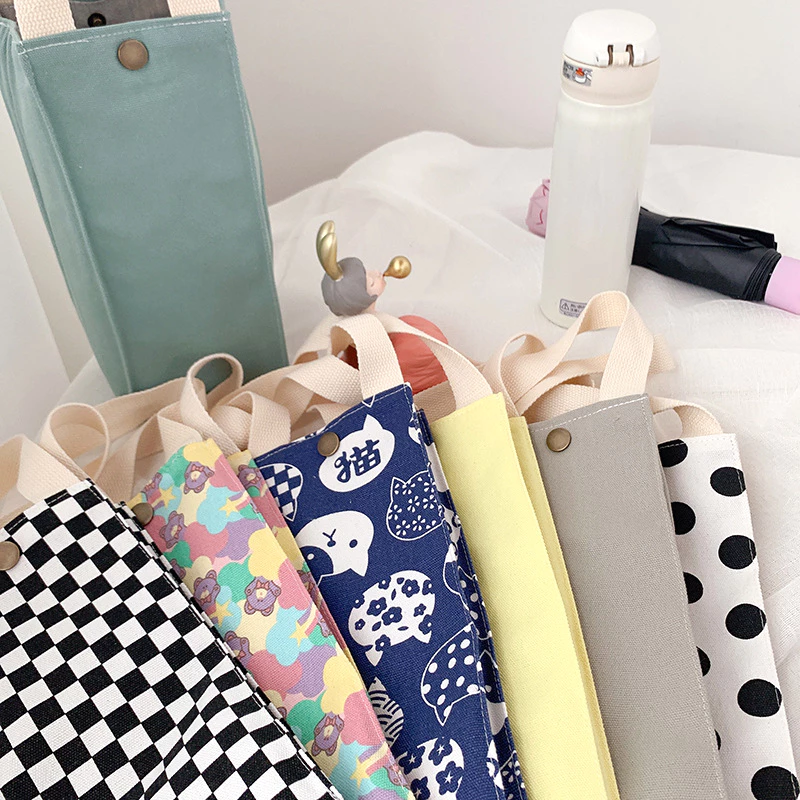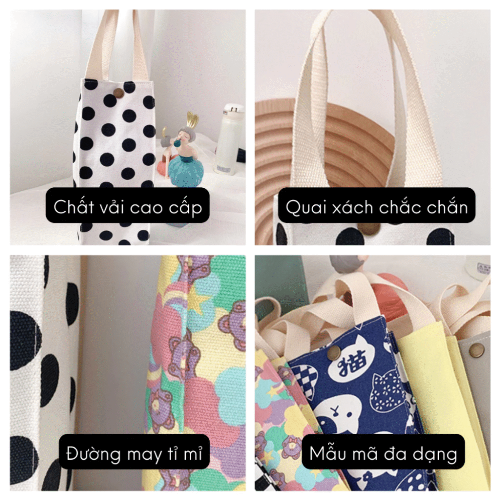 Túi đựng ly giữ nhiệt, bình giữ nhiệt, ly trà sữa bằng vải canvas 2 lớp dày dặn với nút bấm | CV05